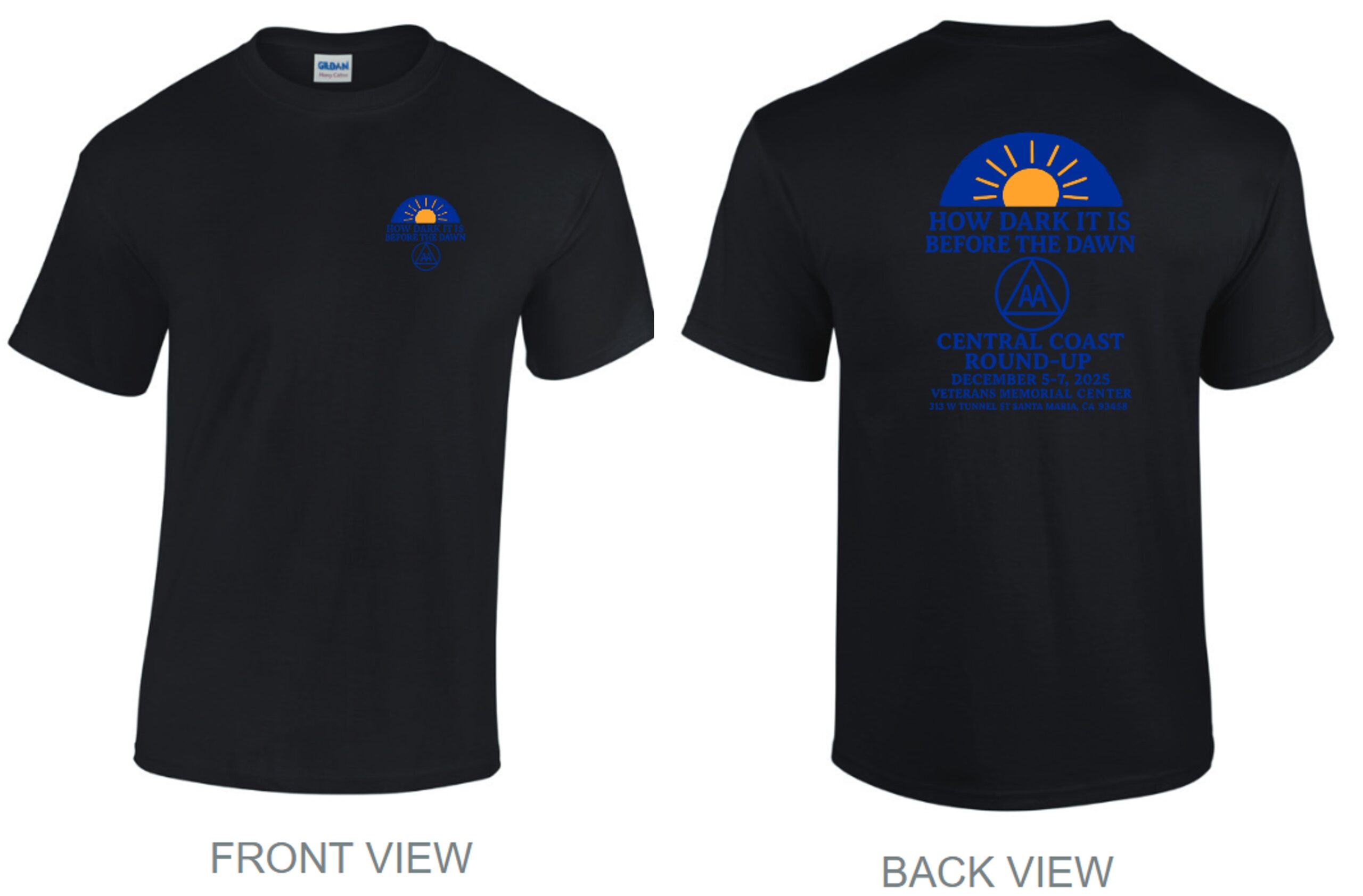 2025 Central Coad Roundup T-Shirts are black with a small logo in the front and a large logo on the back.